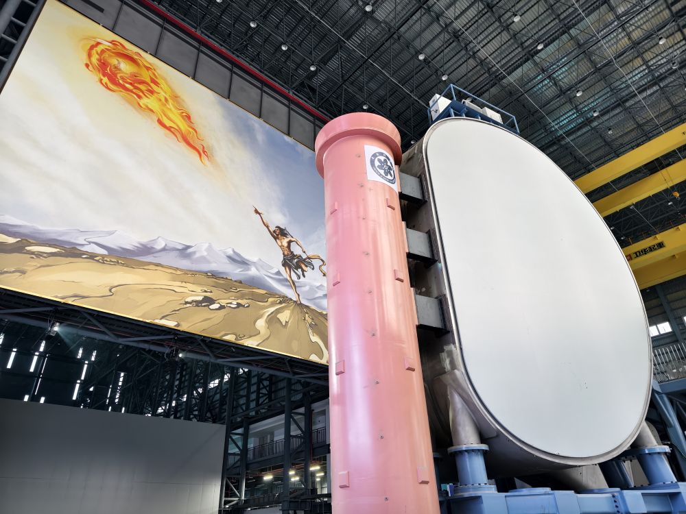 在11号厂房,墙壁上高达十几米的夸父每日画像,烘托着一座形似“橘子瓣”的浩大腔体,让科技蓝为主颜色的空间里有了活跃的神韵。明天,八个这么的“橘子瓣”如鱼得水,下一代“东谈主造太阳”将在里头进行“毁灭”实际。