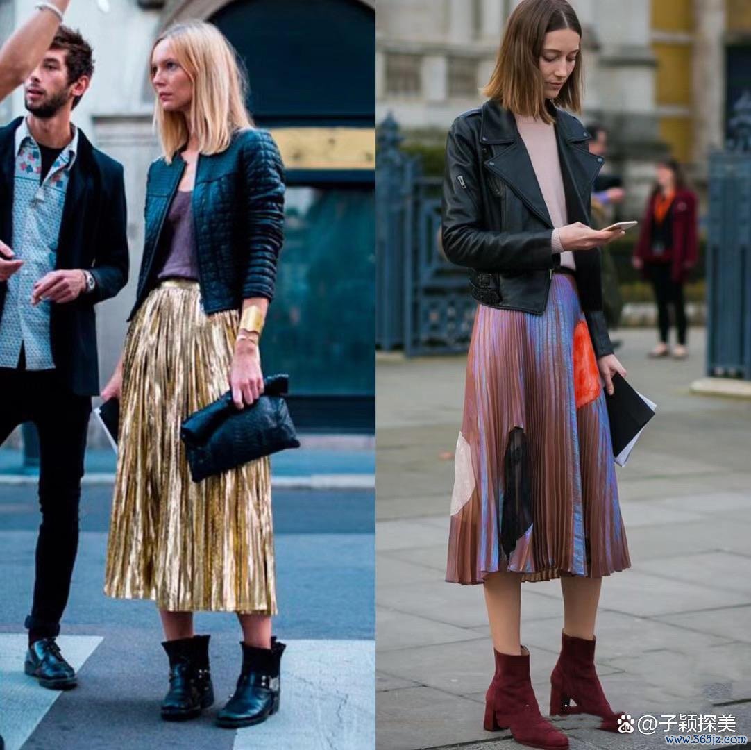皮衣外衣+亮片百褶裙,视觉冲击力更强、愈加个性