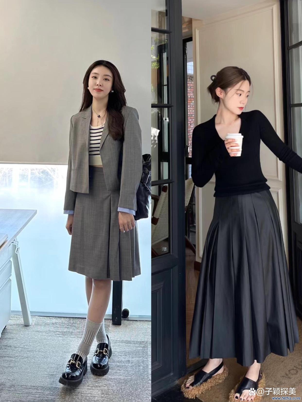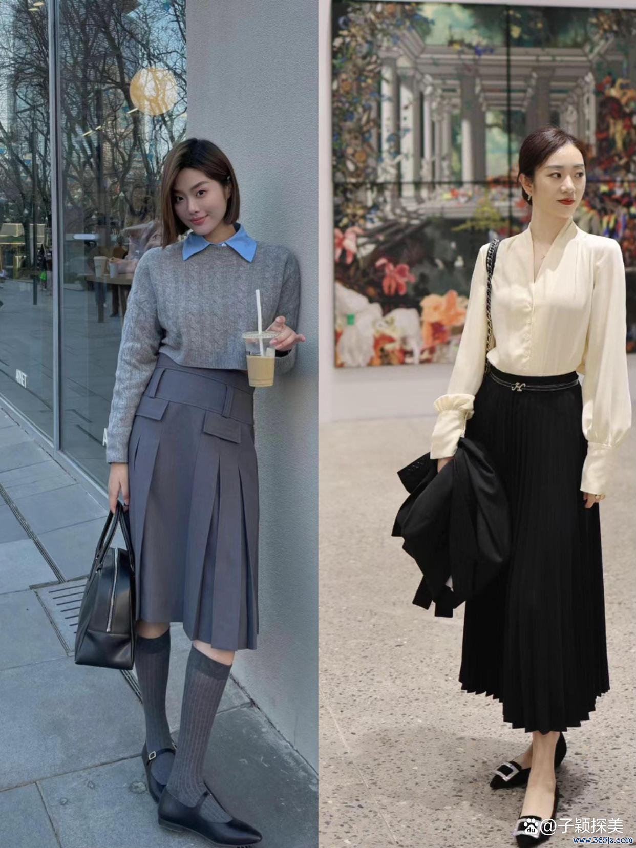 小上衣+百褶裙,怎么穿戴才会愈加端淑细心呢?