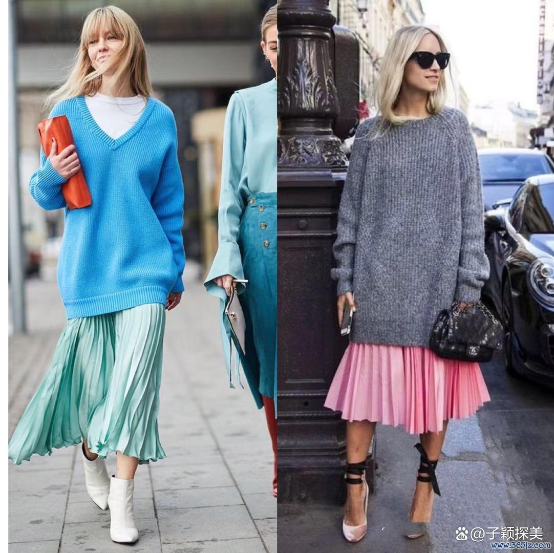 毛衣+百褶裙,配腰带顽固,高等大气、比例感更强
