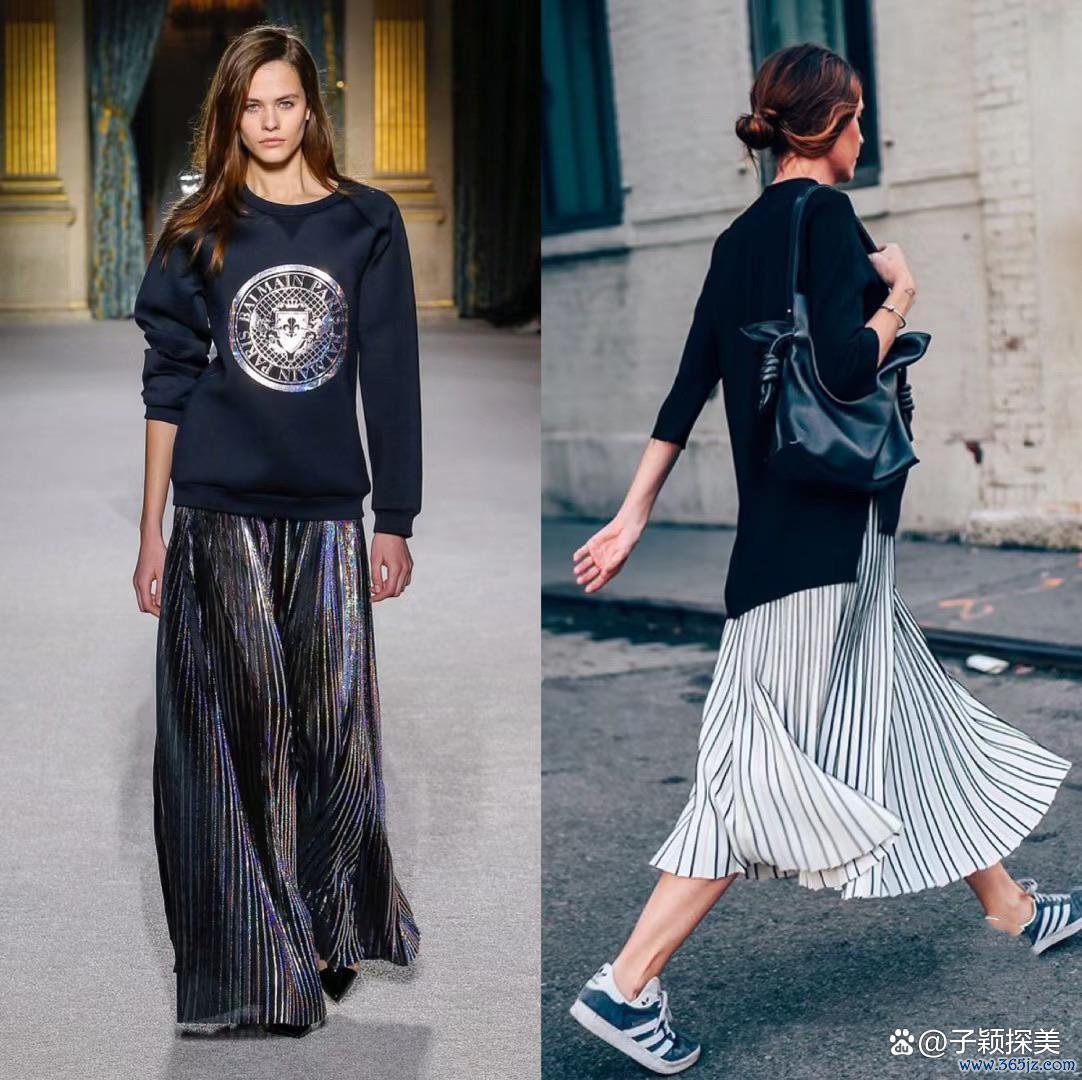 卫衣+线条顽固的风琴百褶半身裙,放肆又吸睛,端淑度在线