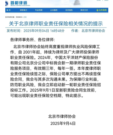 只是推论一年后,在2025年续签的重要节点,保障公司却片面断然文书退出。据北京市律协泄露,两边历经屡次深入相似,均未能达成共鸣,这凯旋导致自9月1日起,北京讼师行业无奈濒临保障的空窗期。