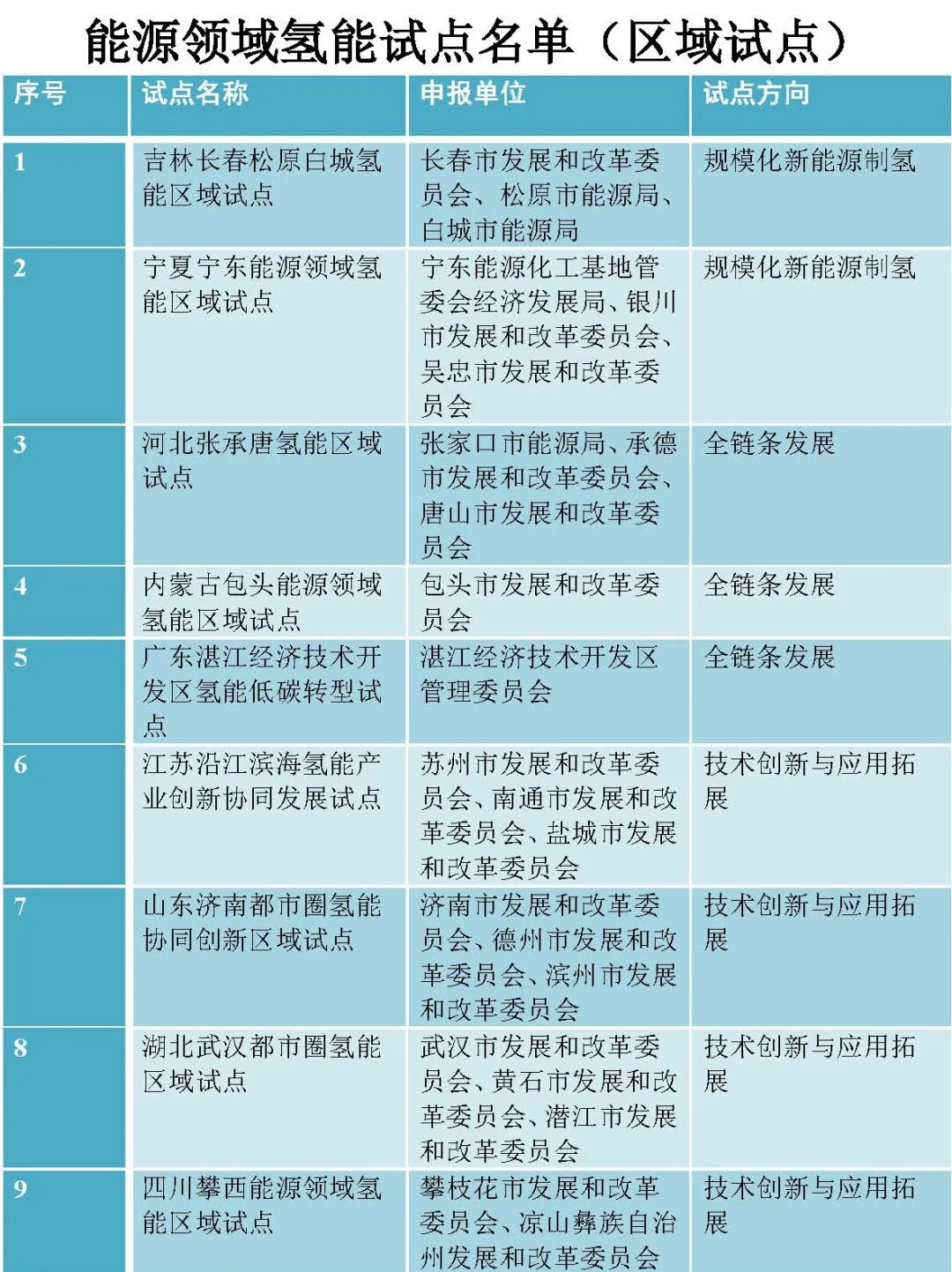 国度动力局10月16日公示动力领域氢能试点(第一批),拟支握内蒙古深能鄂托克旗风光制氢一体化合成绿氨及氢能耦合欺骗等41个名目、吉林长春松原白城等9个区域开展动力领域氢能试点使命。