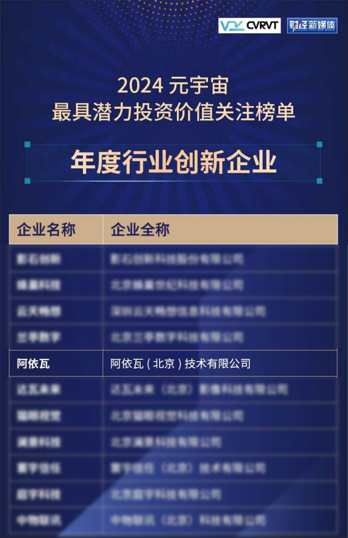 近日,由中国虚构现实技艺与改进平台(CVRVT)和《财经》新媒体共同发起的“2024年度元天地最具后劲投资价值关注榜单”评比驱散崇敬揭晓。ALVA Systems 再度上榜,荣获“2024年度元天地行业最具后劲投资价值关注榜单”——“年度行业改进企业”。